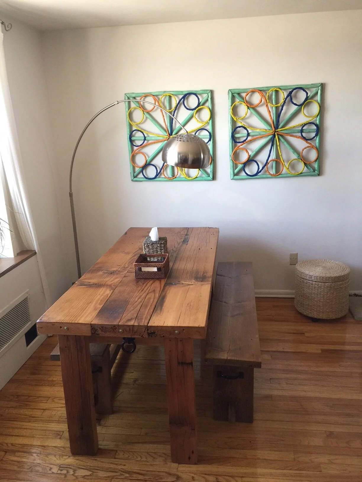 Custom reclaimed wood table and benches
